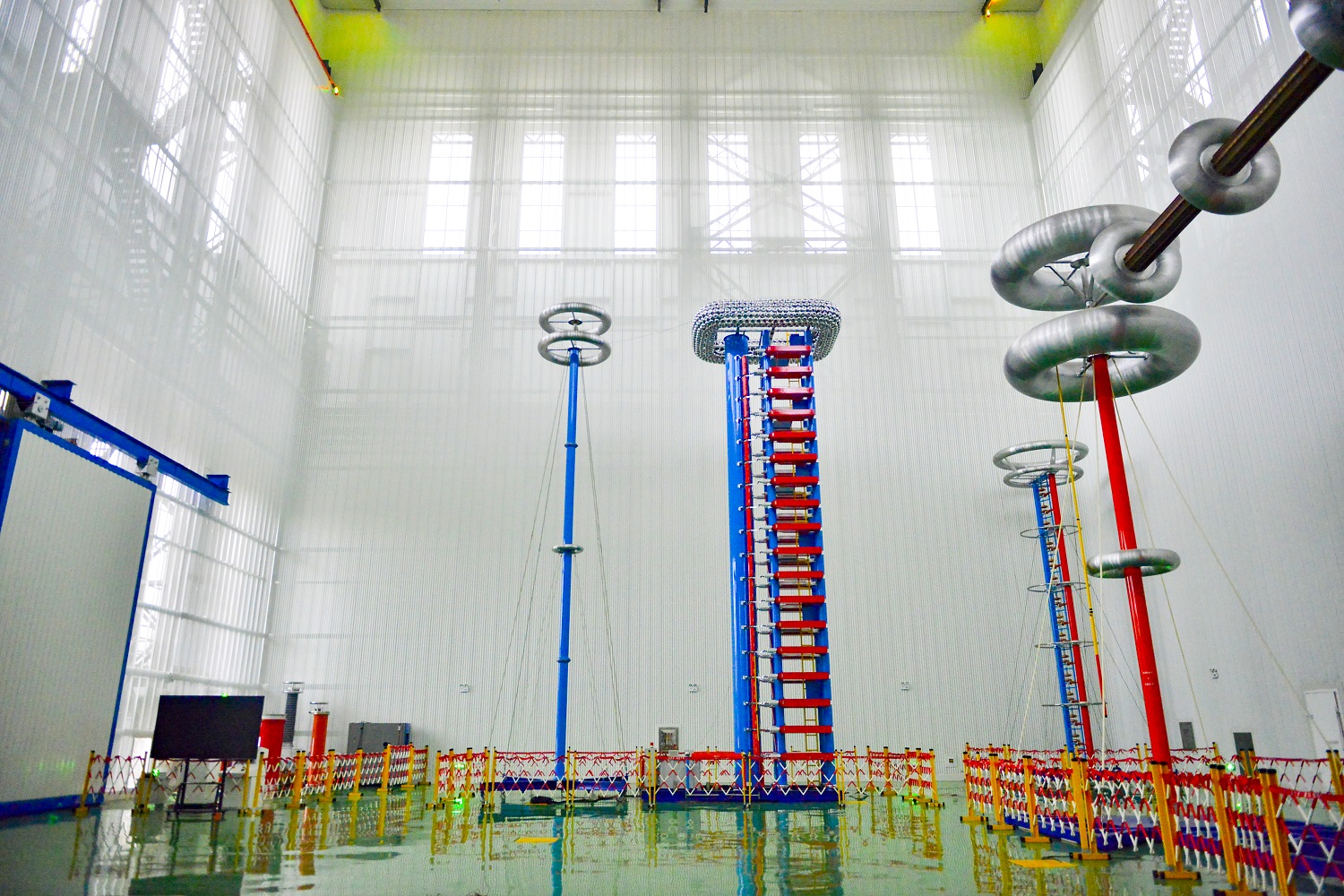 國網湖南電科院電網設備檢測中心物資質量檢測用房項目位于長沙市岳麓高新區玉荷路以南,長譚西東輔道以東,由國網湖南省電力有限公司電力科學研究院投資建設,中機國際工程設計研究院有限責任公司設計,新建物資質量檢測用房1棟,總建筑面積8831.41平方米,最大單跨跨度48米。包括主網物資檢測用房、配網物資檢測用房、配網終端設備檢測用房。其中,主網物資檢測用房地上1層,建筑高度34.55m,建筑面積1616.56平方米;配網物資檢測用房包含檢測大廳及電線電纜綜合試驗室,檢測大廳地上1層,電線電纜綜合試驗室地上3層,建筑高度13.75m,建筑面積6062.48平方米;配電終端設備檢測用房地上1層,建筑高度13.75m,建筑面積814.96平方米。物資質量檢測用房主要采用鋼排架結構、鋼筋混凝土排架結構、鋼筋混凝土框架結構,基礎均采用預制混凝土管樁。