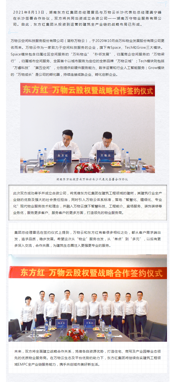 湖南東方紅集團與萬物云達成戰略合作